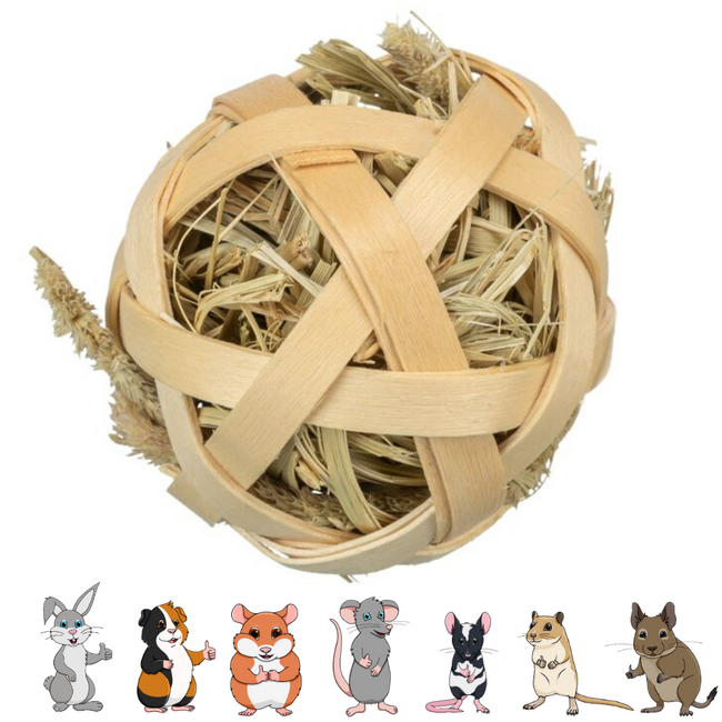 The bamboo ball is the perfect toy for your rabbits, guinea pigs, or other rodents. This completely natural toy is made from natural materials with hay and not only provides hours of playtime but also contributes to your pet's well-being. This toy is ideal for combating boredom and ensures that your animal stays engaged both physically and mentally.