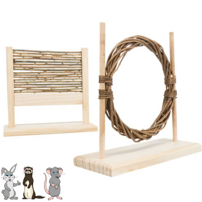 Made from untreated wood and willow branches, this toy is safe for your pets. The natural material encourages a healthy and active lifestyle and provides your rodents with the opportunity to enjoy a varied play environment. The ring and hurdle are designed to be sturdy and durable, able to withstand your pets' enthusiasm.