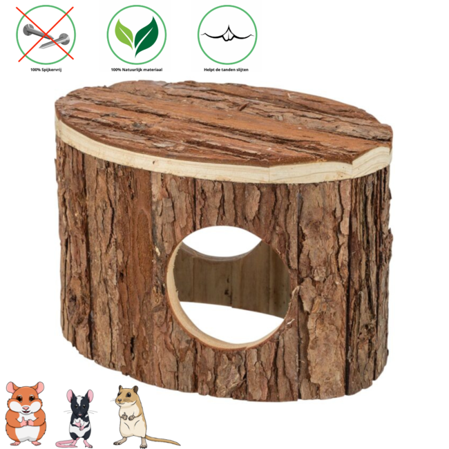 The house features a lookout spot on the roof and has two entrances and exits, making exploration more fun and interesting for your rodent. The Trixie House Mette is made of natural bark wood, which is not only durable but also provides a natural look that fits perfectly in any cage.