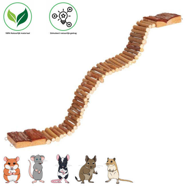 This hanging bridge is made of wood and can be attached to both sides of your rodent's cage. The wood can be bent into different shapes, allowing you to rearrange the cage in various ways.