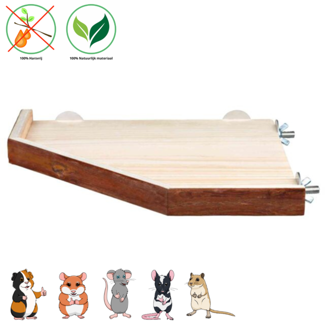 Give your rodent more play and living space with this platform of 28 x 28 cm, perfect as an extra level for any rodent enclosure. Made from durable bark wood, this platform not only fits in size but also in appearance in almost any cage. It provides a natural atmosphere that encourages your pet to climb, explore, or just relax. By simply hanging the platform in the enclosure, you instantly create more space without needing to purchase a larger cage. This is ideal for rodents such as rabbits, guinea pigs, hamsters, gerbils, mice, and even rats, who enjoy utilizing different heights in their living environment.