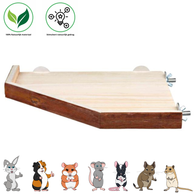 This platform to hang in your pet's enclosure is the perfect way to create extra space in your rodent's habitat. Whether you have a rabbit, guinea pig, hamster, gerbil, mouse, or rat, this platform provides both an extra level and a new place to explore and play. The platform is made of durable bark wood, which is not only sturdy but also contributes to a natural look of the habitat. This makes your rodent feel more at ease and in harmony with its environment.