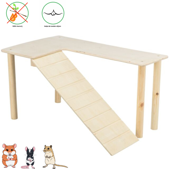 The Trixie Platform is a versatile addition to the living space of small rodents such as mice and hamsters. Made of untreated wood, this platform provides a safe and natural environment for your pet to explore and play in.