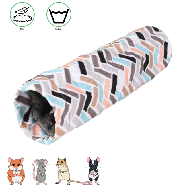 The Clavio hamster tunnel is perfect for your furry friend! Made from soft padded fabric and featuring 2 convenient side openings. Easy to clean with hand washing. Let your pet enjoy hours of fun!