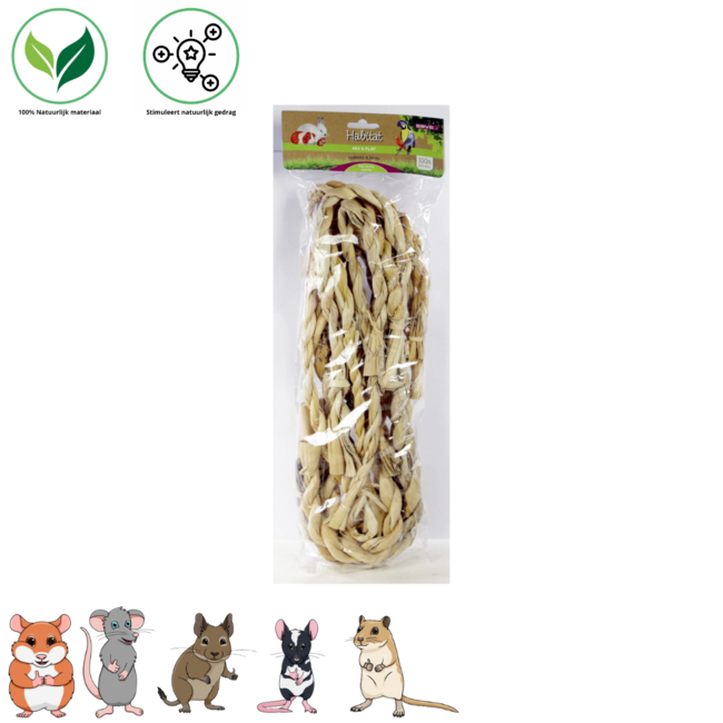 The Banana Rope for hamsters and other rodents is a fantastic addition to their living space. After a busy day of playing and exploring, this unique toy provides the perfect opportunity for your little friend to express their natural behavior and enjoy their environment. This rope is specially designed to meet the needs of curious rodents such as hamsters, mice, rats, and guinea pigs.