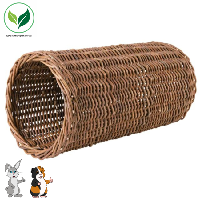 Rabbits and guinea pigs naturally love hiding spots and tunnels. With this willow tunnel, your pet will have a great time! The tunnel is made from woven willow branches and is 100% natural. Your rabbit or guinea pig can not only lounge in the tunnel but also roll or throw it, and safely use it as gnawing material.