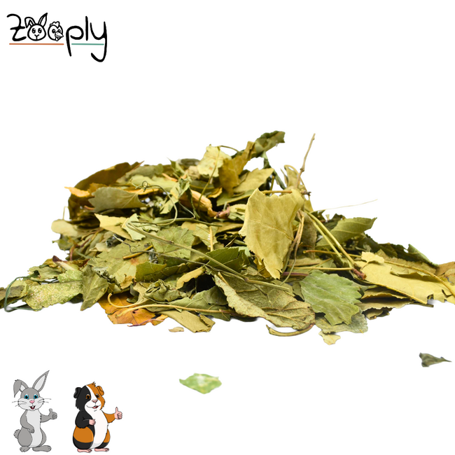 Konijnen en cavia’s eten van nature graag verschillende soorten bladeren en planten. Daarom past Zooply fruitbomen bladerenmix goed binnen een gevarieerd voedingspatroon. De mix is ideaal als aanvulling naast hooi en dagelijkse brokjes. Hooi blijft altijd de basis van de voeding, maar met deze gedroogde bladeren maak je het menu interessanter en natuurlijker. Dit stimuleert ook foerageergedrag, zoals snuffelen, zoeken en rustig knabbelen. Zo wordt eten niet alleen een voedingsmoment, maar ook een leuke bezigheid.