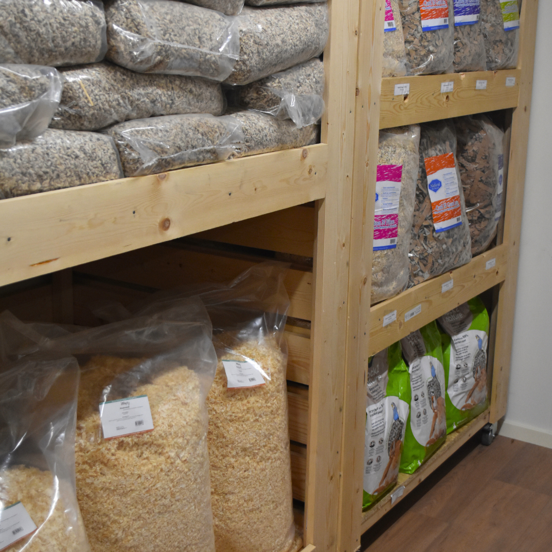 Een van de meest indrukwekkende onderdelen van onze winkel is de verblijvenafdeling. Met 350 m² showroom hebben wij de ruimte om hokken, terraria en rennen fysiek op te stellen — zodat jij ze in het echt kunt bekijken voordat je een keuze maakt.